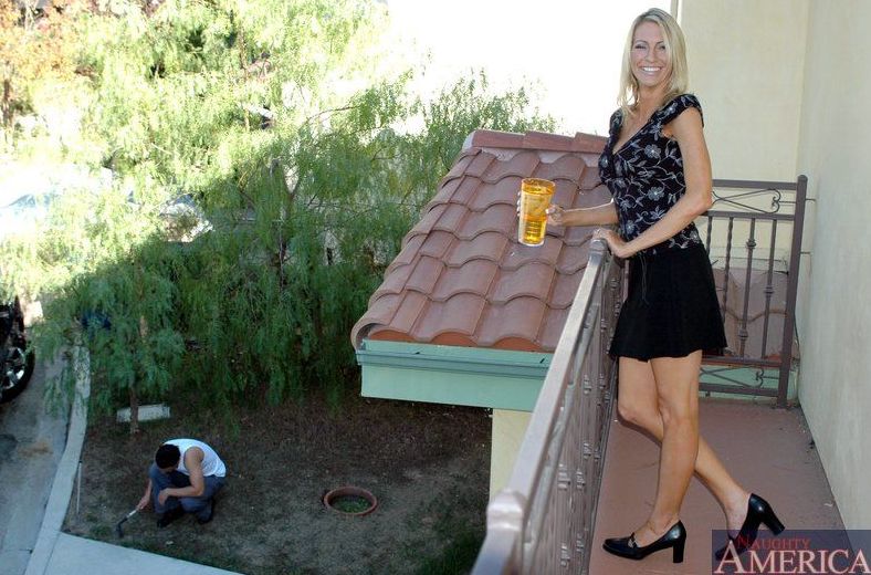 Busty blonde Emma Starr in sexy underwear getting her shaved camel toe nailed.