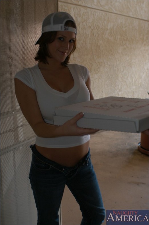 Sexy pizza delivery girl Eve Lawrence getting big hard tip up her slippery pussy.
