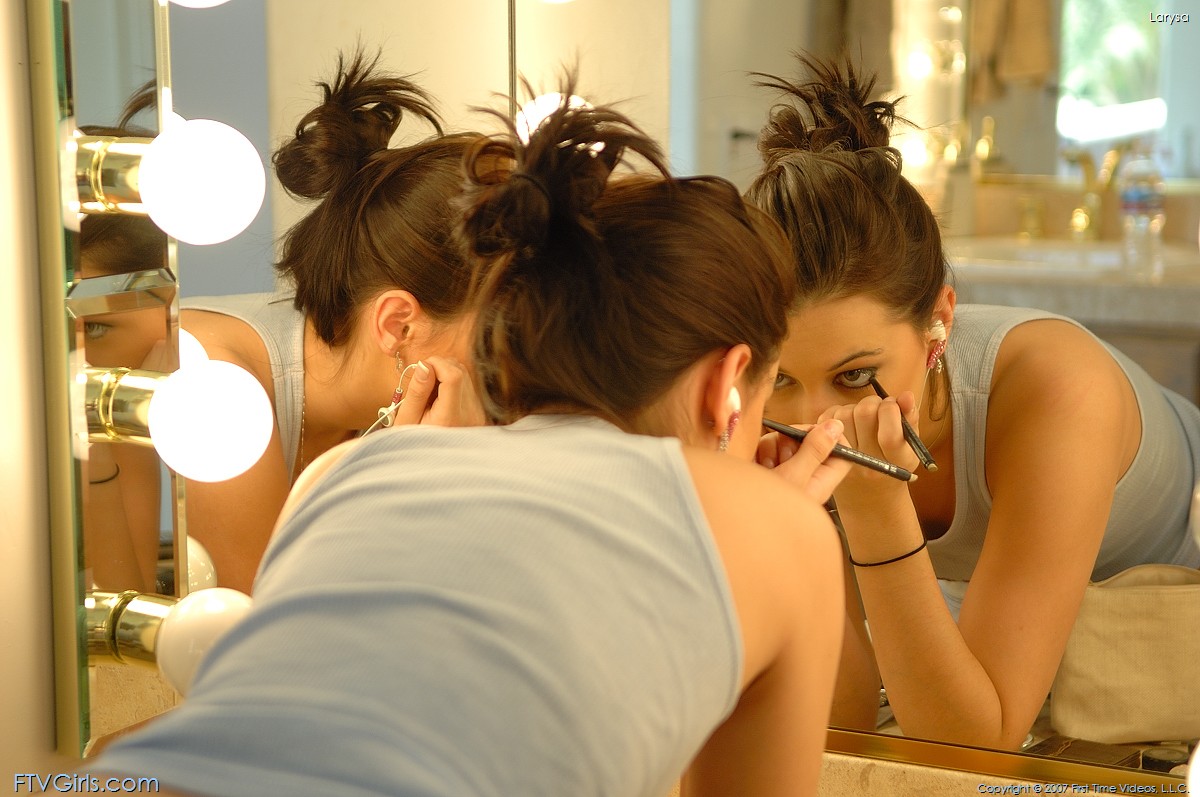Georgia Jones posing, getting naked, shownig her tits and doing a sexy makeup.