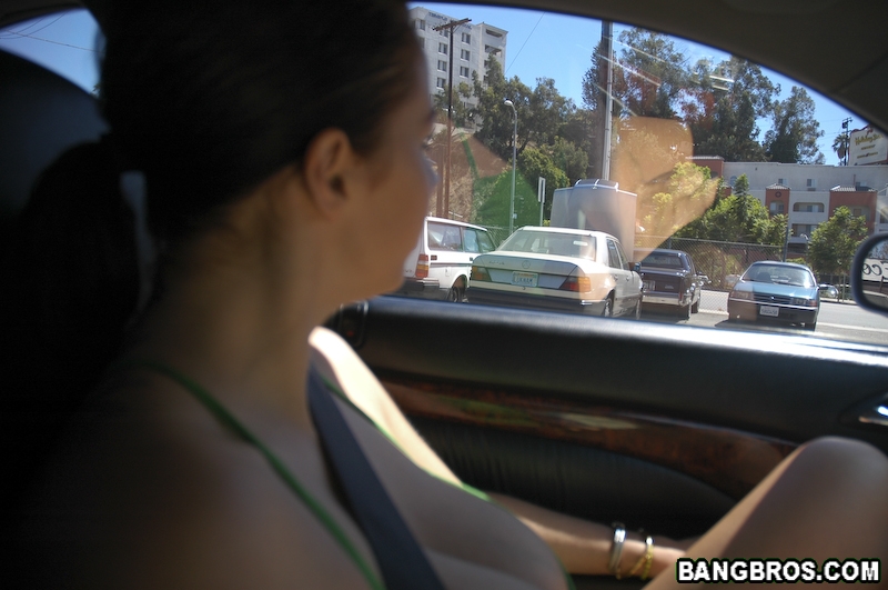 Gianna Michaels takes her clothes off inside a car and then gets fucked roughly.