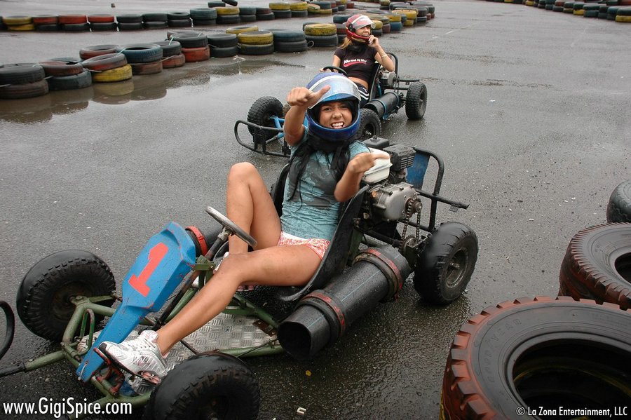 Sweet carting driver Gigi Spice taking shorts off and showing sexy tanned cunt.