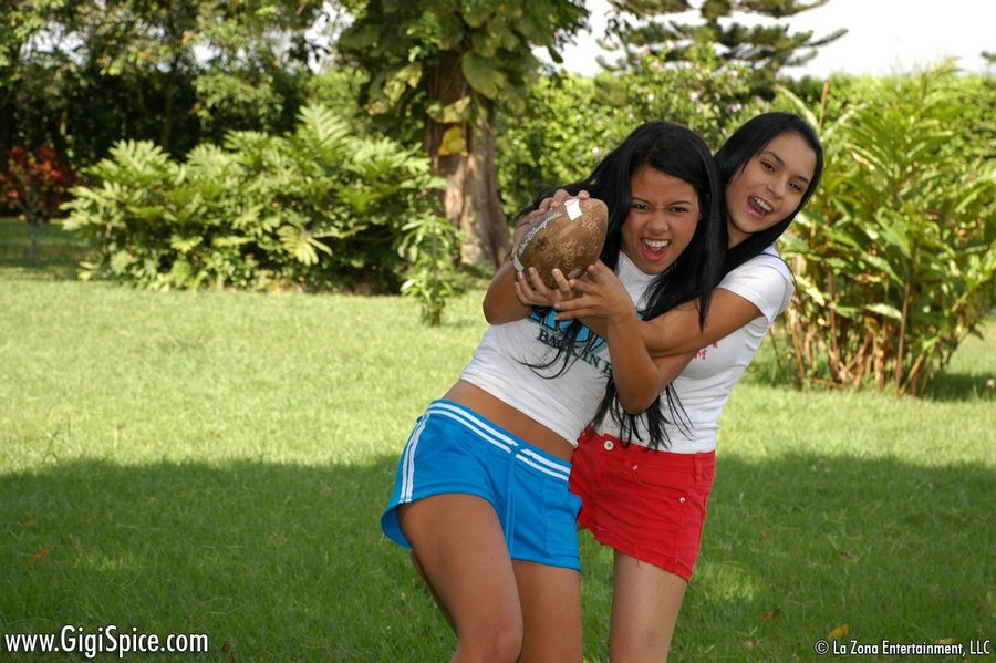 Bootylicious tanned brunette Gigi Spice making out with sexy brunette hottie.