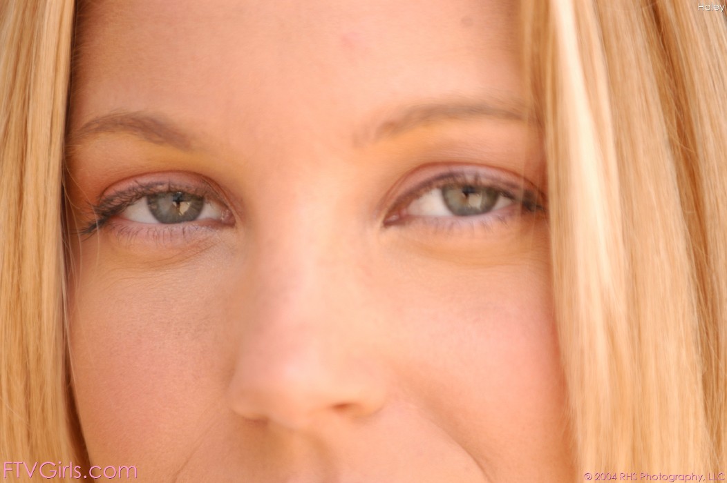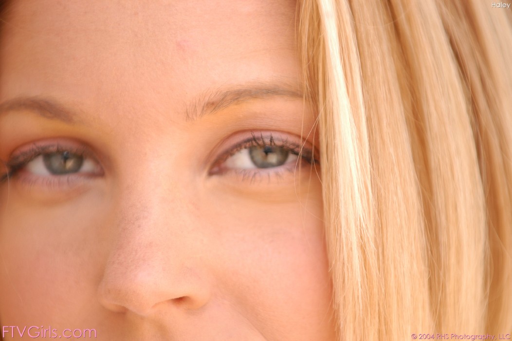 Sexy blond babe Haley Scott flashes her sweet tits while posing on the street.