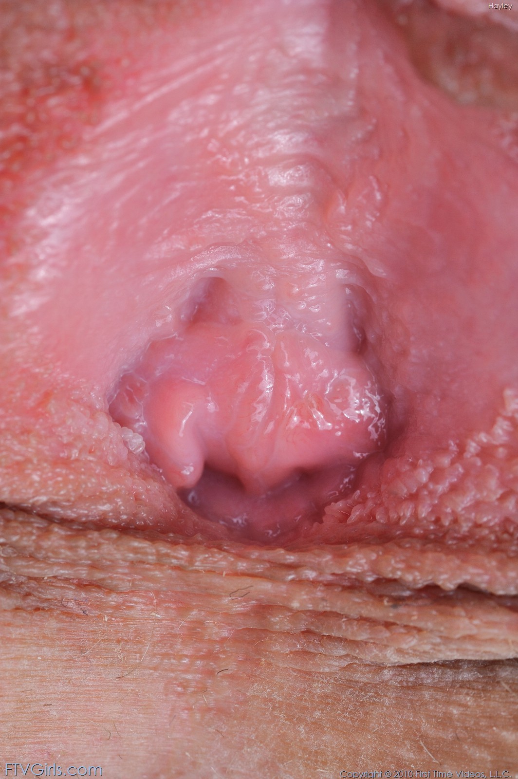 Hayley Hanes shows how her clit looks like after she has rubbed it for a while.