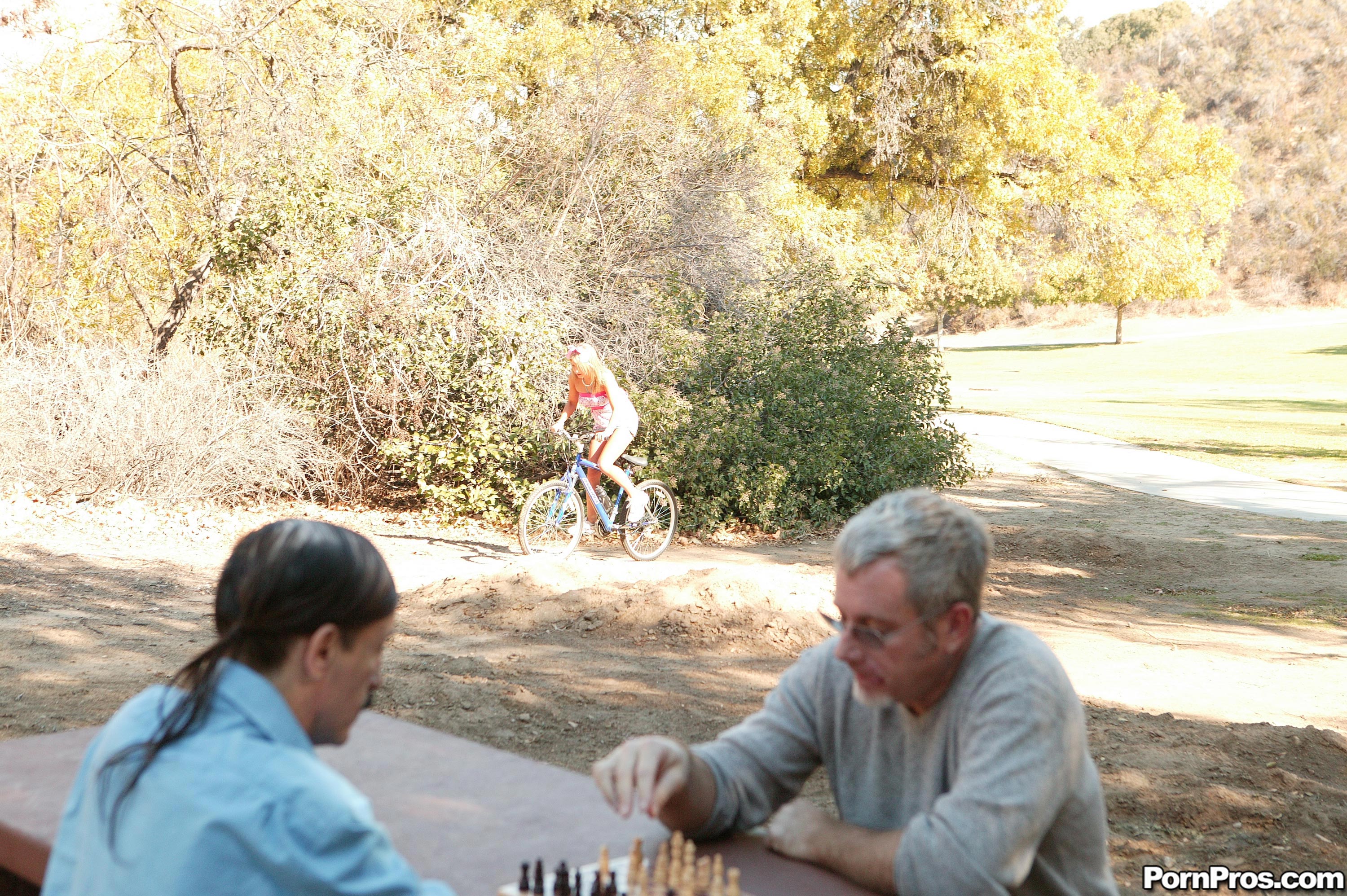 This alluring young lady fools around with two old guys. She enjoys those tasty peckers for sure
