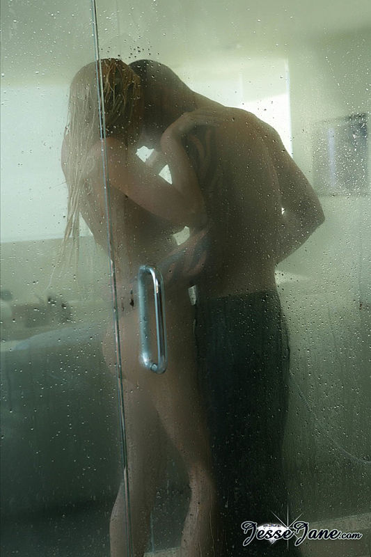 Jesse Jane strips nude in the shower and gets banged by her lover's massive dong.