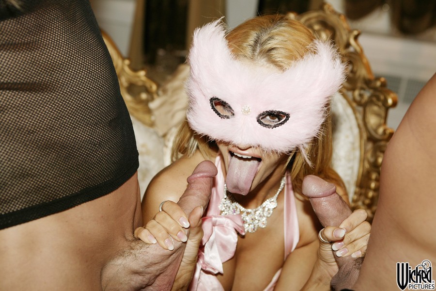 Kinky blonde hoe Jessica Drake gets fucked hard in white corset and sexy mask.