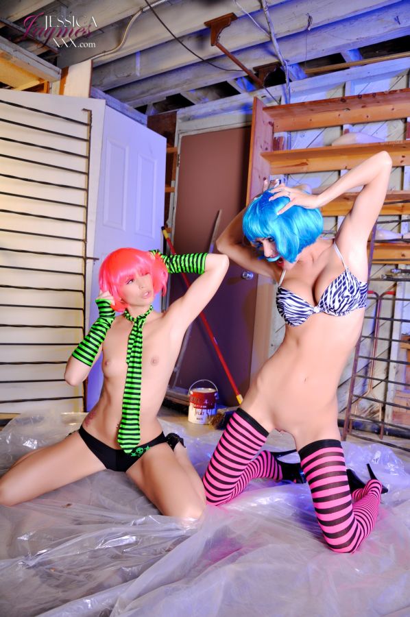 Kinky lesbo babe Jessica Jaymes and her hot friend make out wearing teeny lingerie.