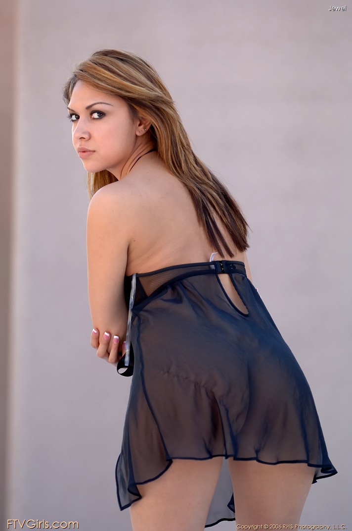 Jessica Jules posing in her cute see through dress and shows her perfect natural tits.