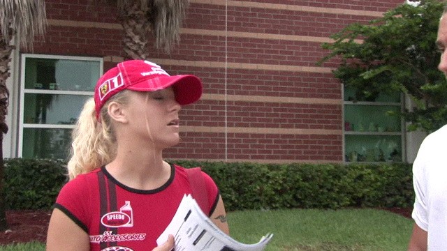 Julie takes her pants off and gets her teen pussy rammed hard and fast by big cock.