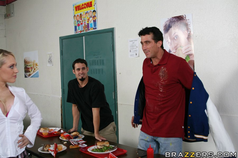 Sweet Kagney Linn Karter shows off her tits and fucks one of her friends at lunch.