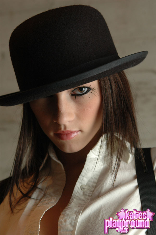 Hot brunette from Kates Playground dresses up as character from Clockwork orange.