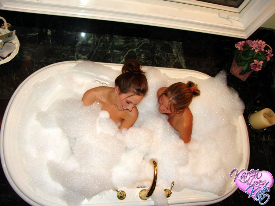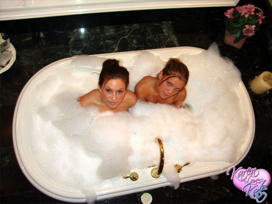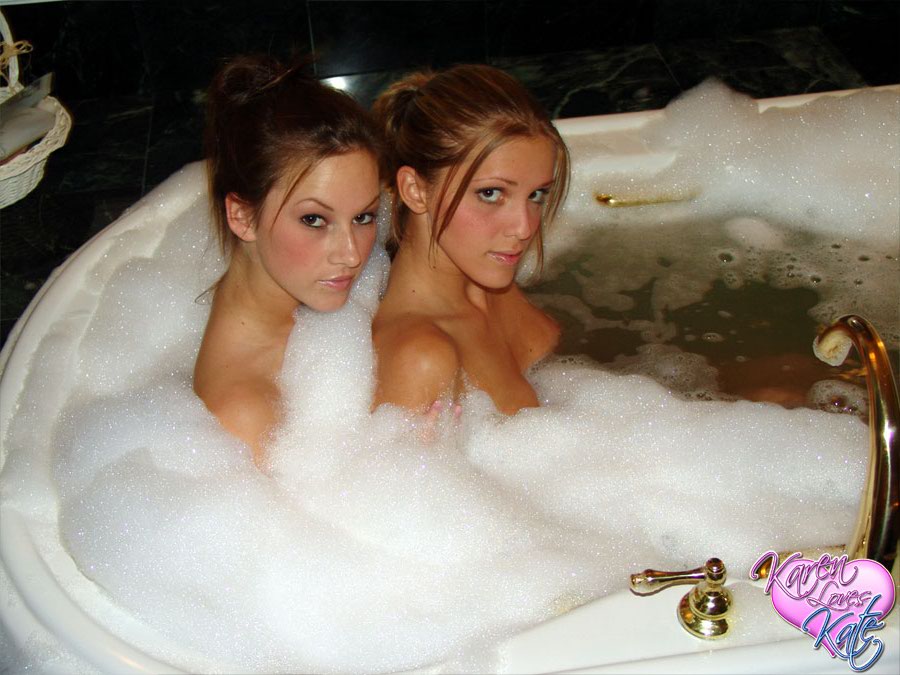 Lusty teen gals Kates Playground and Karen Dreams and make out in the bathtub.