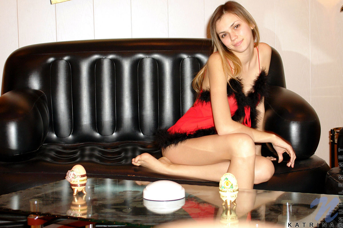 Katrina Nubiles takes her cute red and black lingerie off and shows her perky tits.