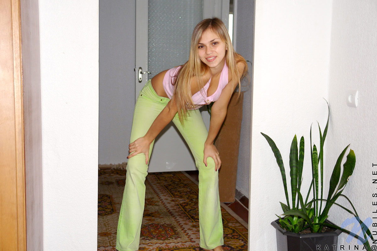 Katrina Nubiles takes her green pants off and shows us her fantastic little ass.