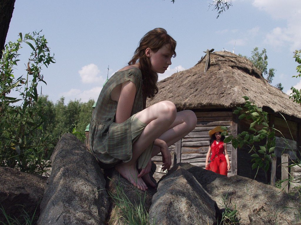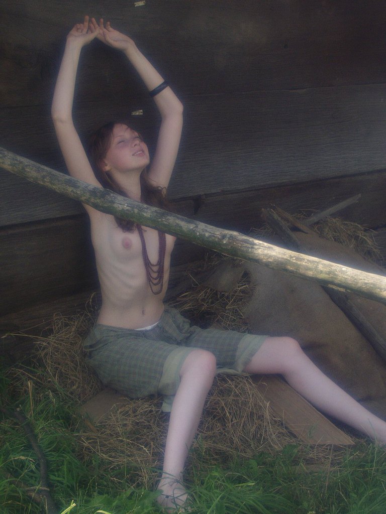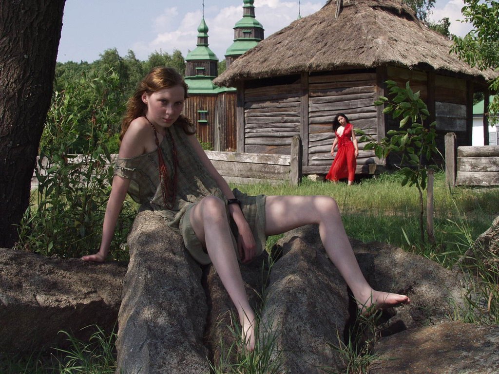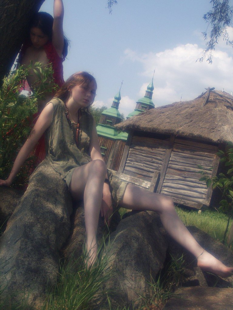 Katya B takes her green dress outdoors in the country and shows her divine body.