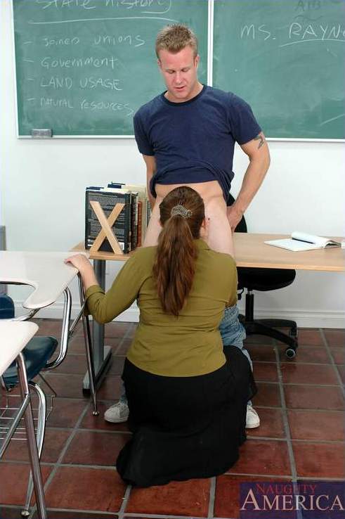 Good looking teacher Kayla Raynes wearing stockings getting her shaved vagina licked.