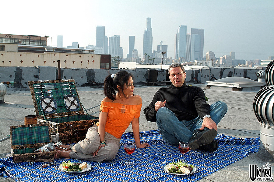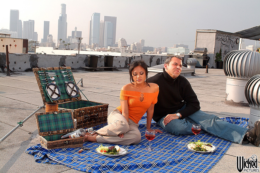 Kaylani Lei and her lad threw a picnic on a roof of their house which ended with sex.