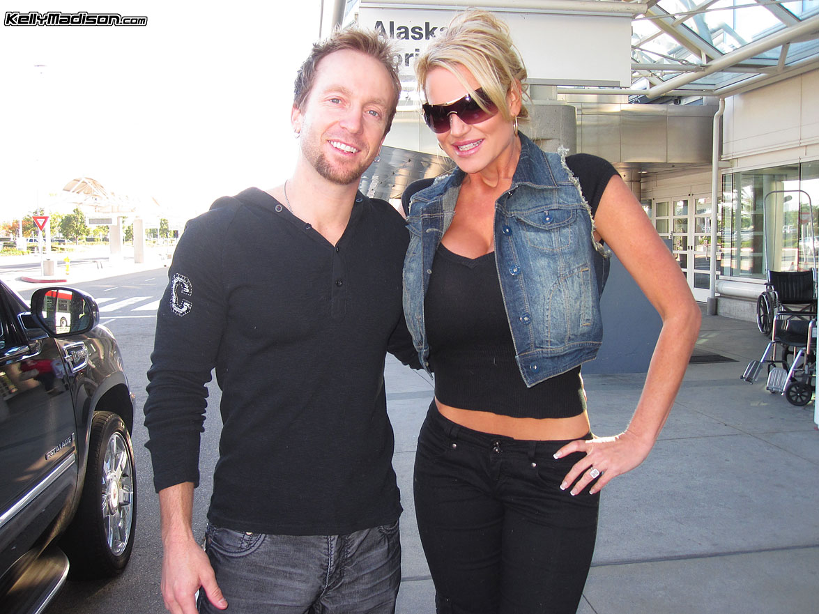 Hot big breasted slut Kelly Madison strips and shows her mammoth sized boobs.