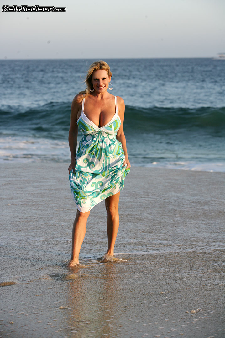 Big breasted blonde hoe Kelly Madison strips her white bikini and shows off.