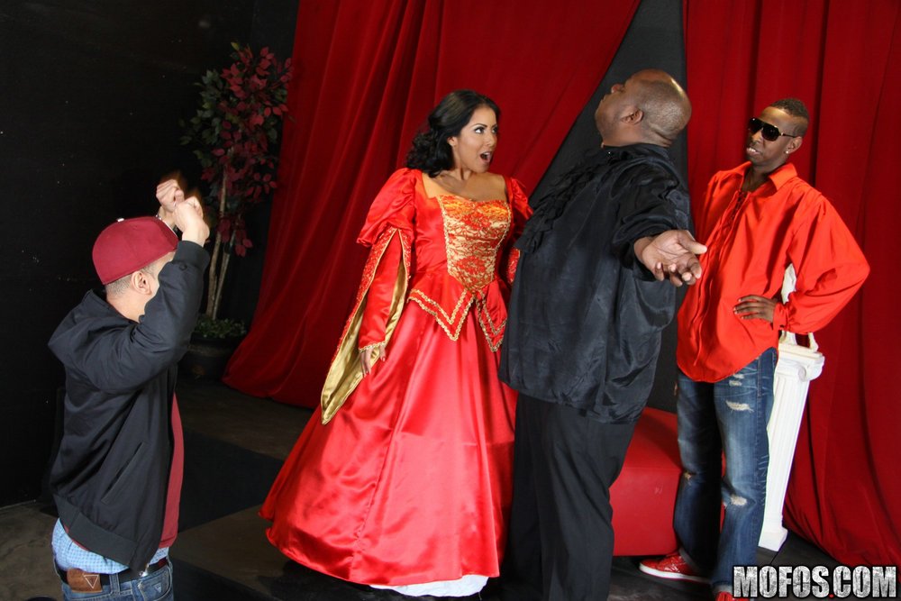 Kiara Mia takes her classy red satin dress off and fucks with a hung black dude.