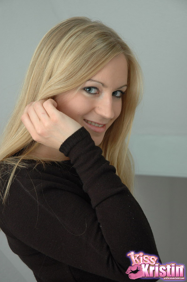 Lusty blonde gal Kiss Kristin takes off her slutty thongs and shows her round ass.