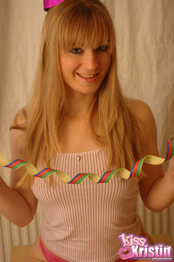 Hot teen babe Kiss Kristin takes off her clothes and shows us her fuckable body.
