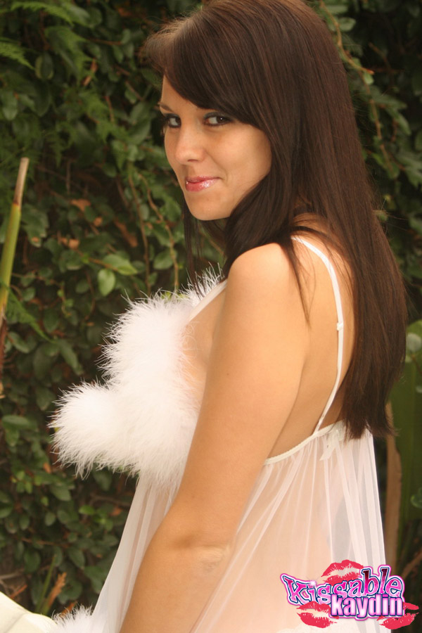 Smoking hot brunette model Kissable Kaydin takes off her white gown and shows off.