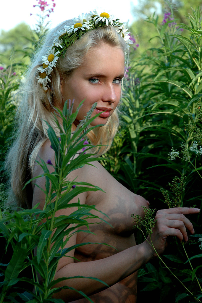 Koika strips her lingerie in the grass and shows us her fantastic little breasts.