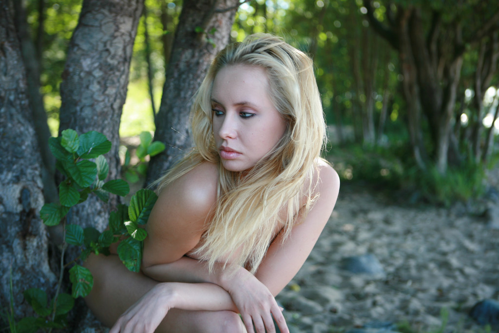 Koika takes her clothes off in the woods and shows us her round big breasts.