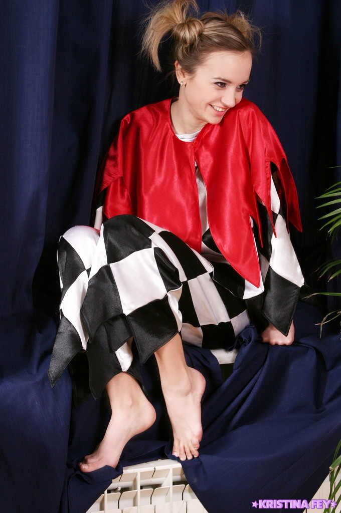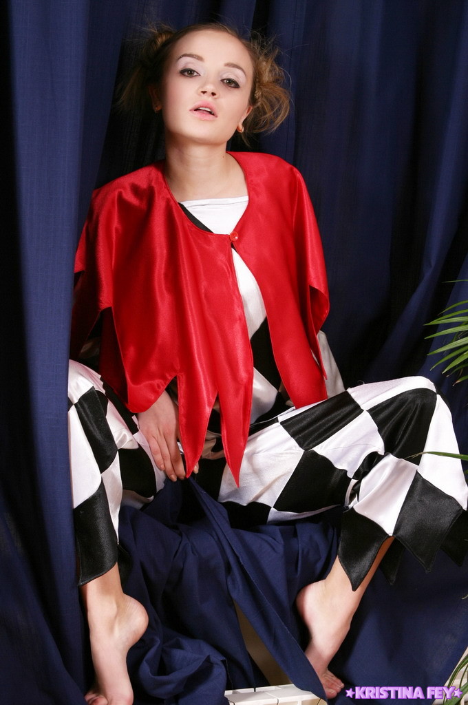 Kinky artistic teen model Kristina Fey takes off her clothes and shows her breasts.