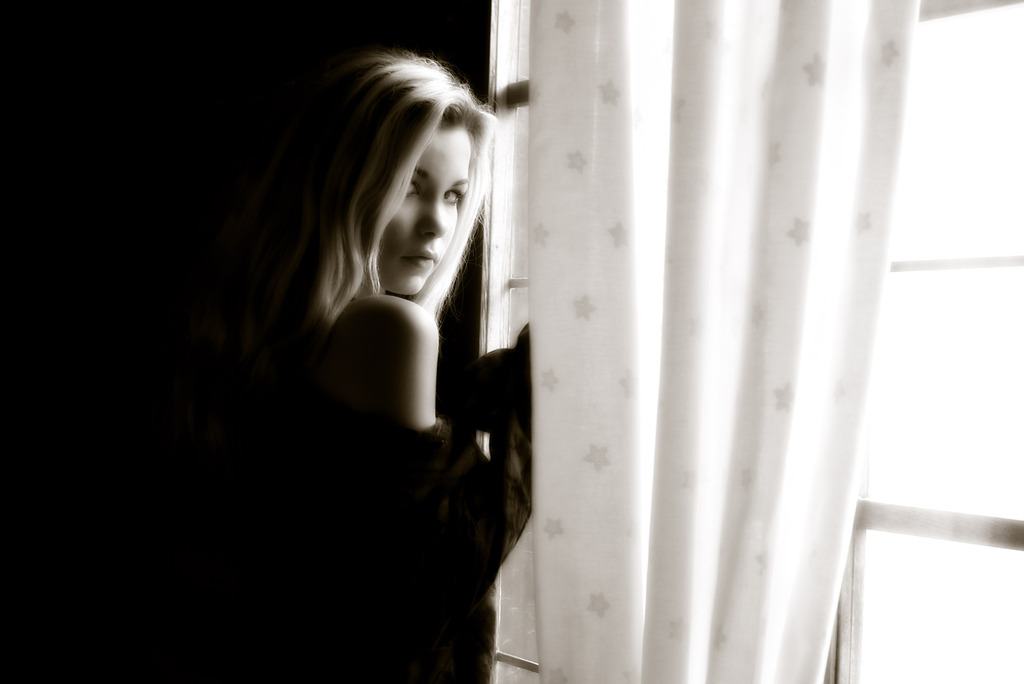 Kristzy A takes her expensive classy black lingerie off and teases in stockings.