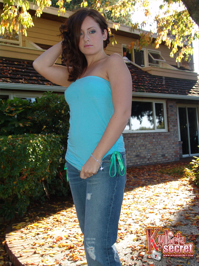 Alluring teen chick from Kylie's Secret strips outdoors and shows her hot ass.