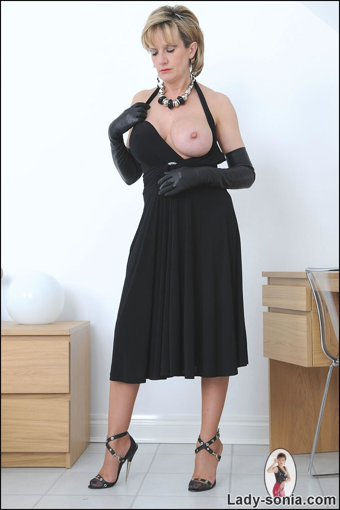 Lady Sonia removes her classy black dress and shows us her amazing tight ass.