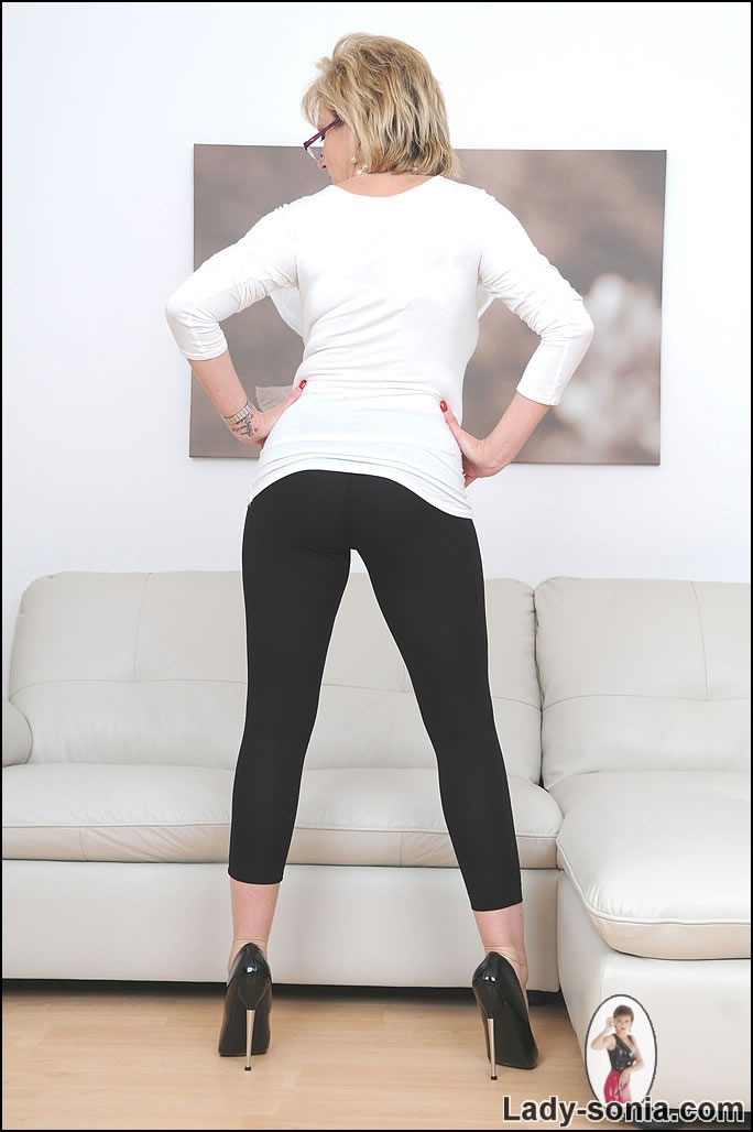 Lady Sonia strips her sexy black pants off and shows us her amazing foxy booty.