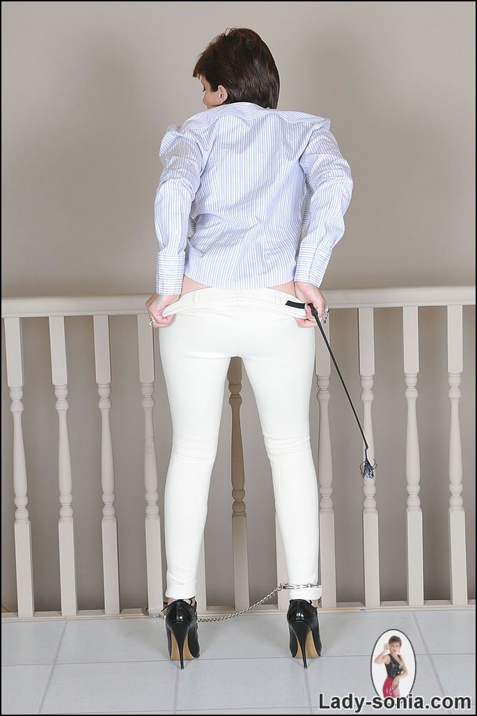 Lady Sonia takes her hot white pants and teases us with her amazing foxy little ass.