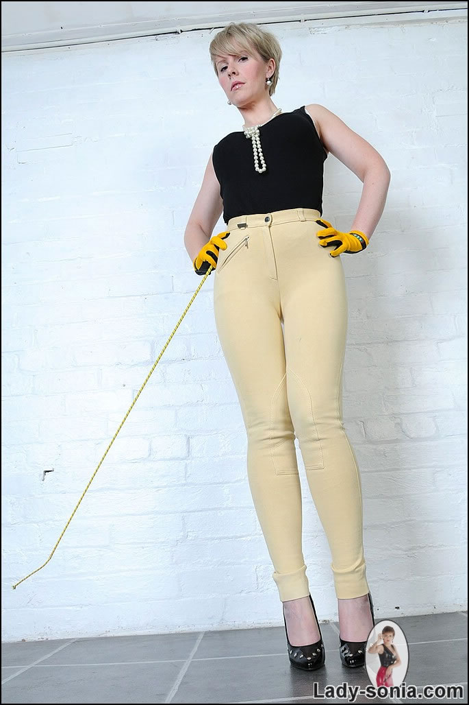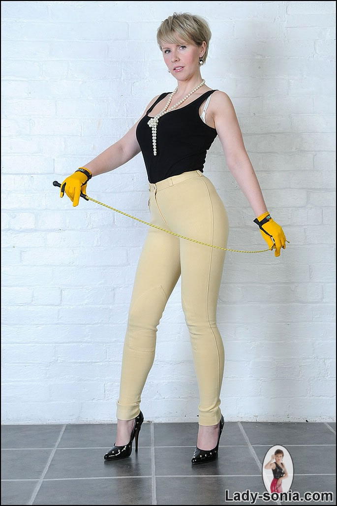 Lady Sonia takes her tight pants off and teases us with her amazing firm tits.