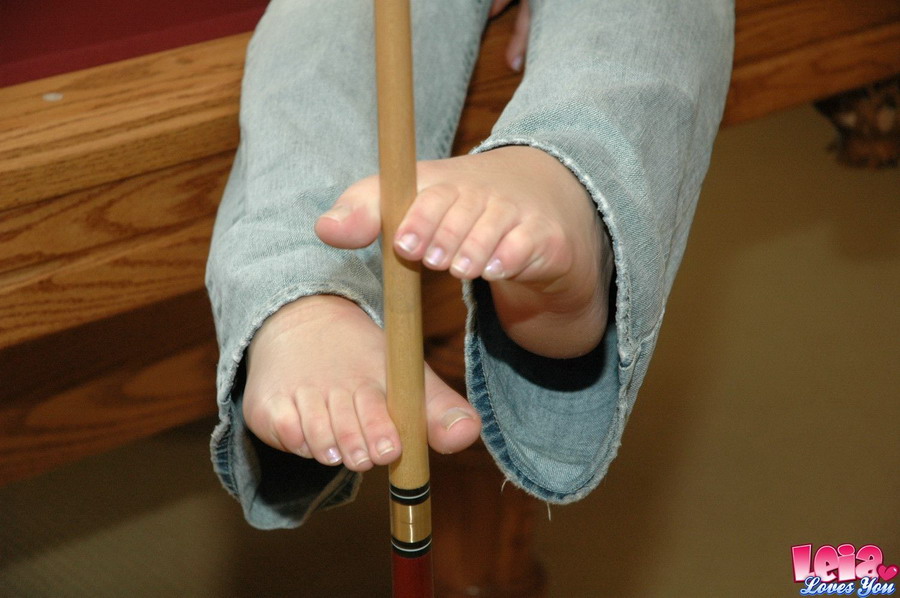 Hot blonde babe from Leia Loves You strips on the pool table and shows her ass.