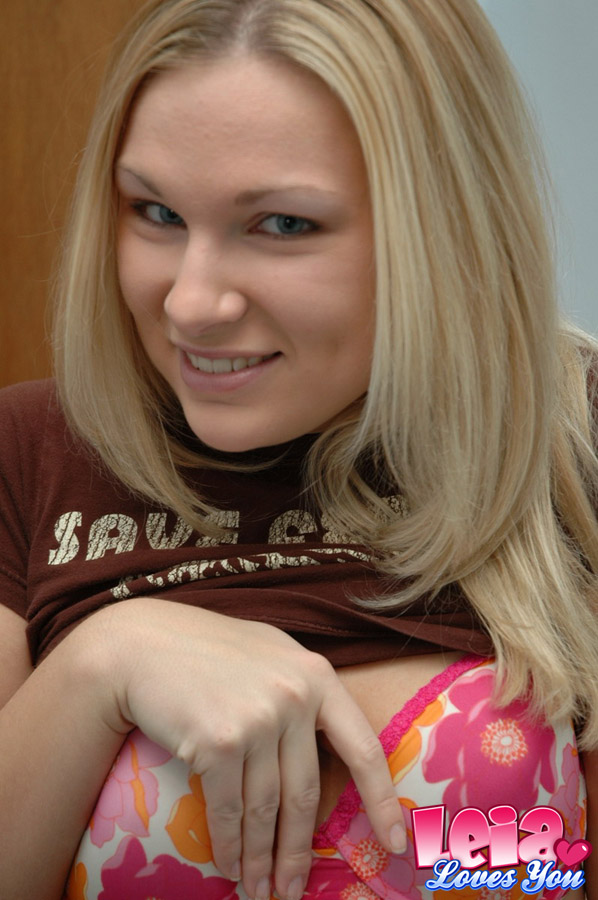 Fuckable blonde gal from Leia Loves You takes off her pink panties and shows off.