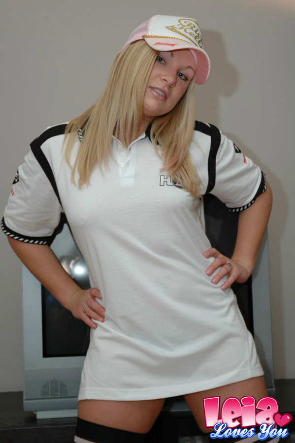 Hot teen gal from Leia Loves You pulls down her black thongs and shows her booty.