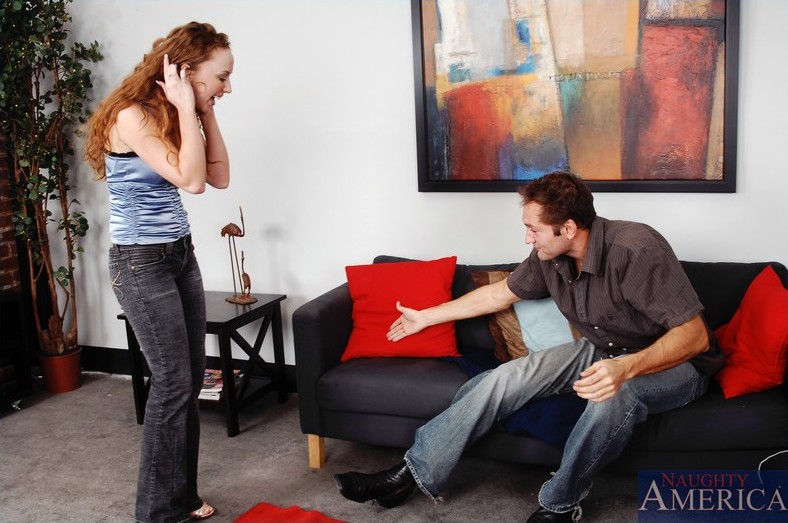 Cute redhead babe, Leighlani Red gets naked and gets her cunt fucked real hard.