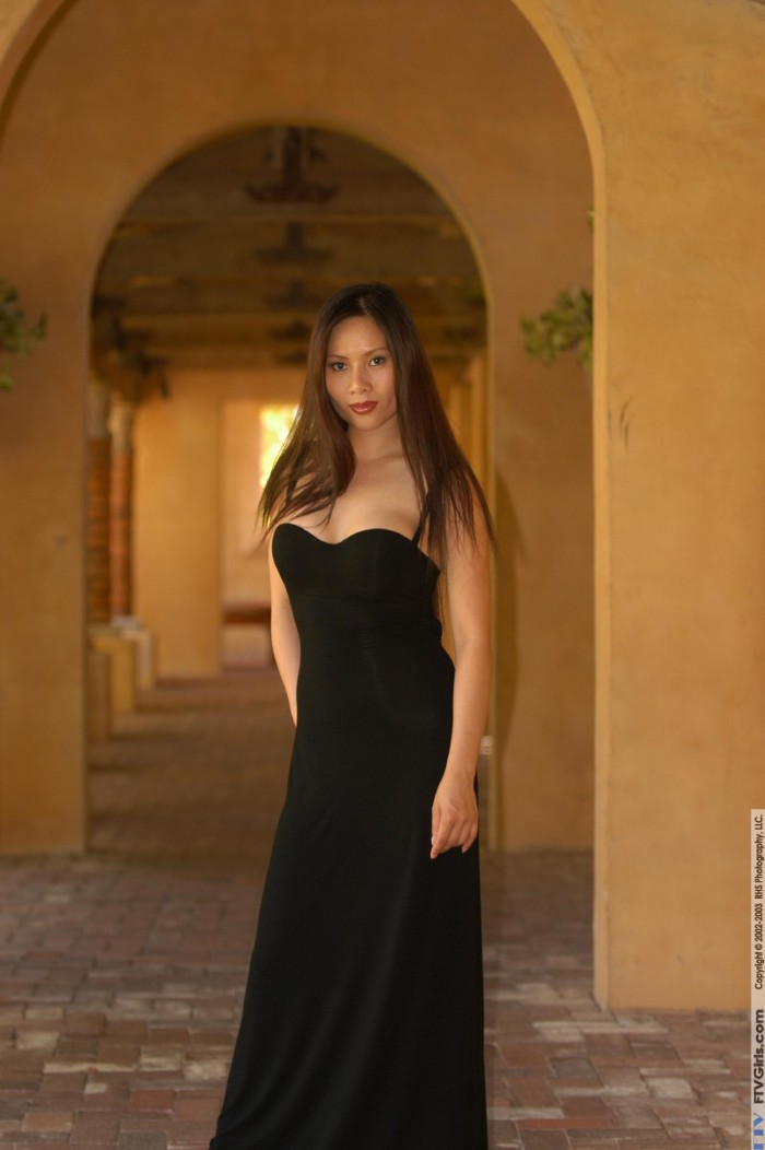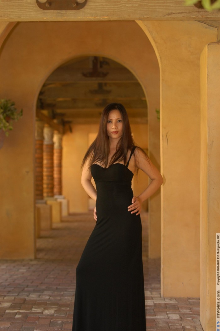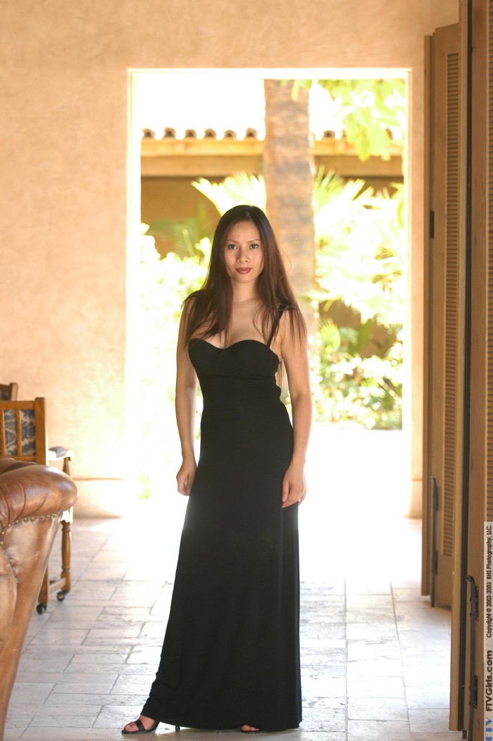 Busty Asian babe Li Chen FTV takes off her tight black dress and shows her muff.