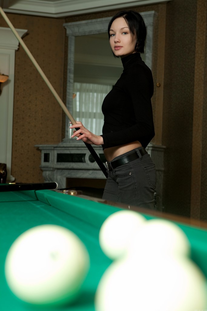 Loreen A takes her clothes near the pool table and exposes her amazing ass.