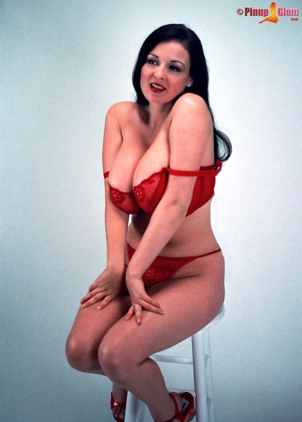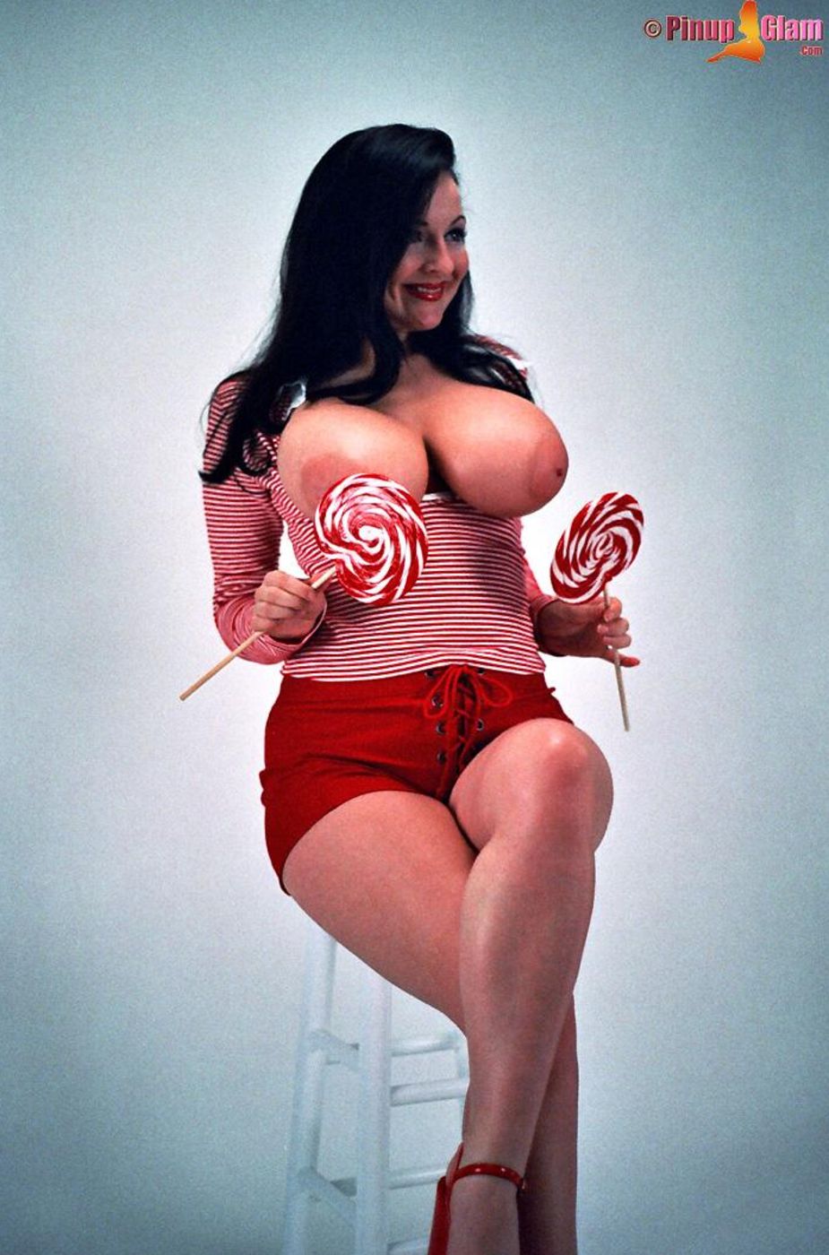 Georgous Lorna Morgan in sexy red lace lingerie and lollypops on the photoshoot.