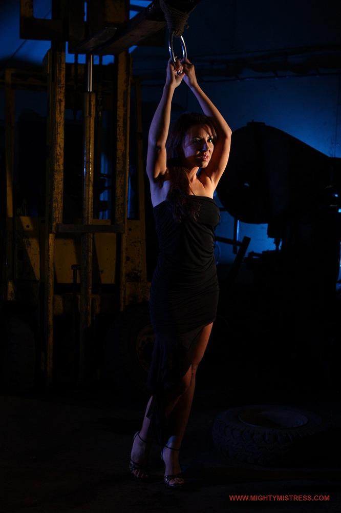 Erotic babe Mandy Bright gets tied down by a mature lezdom and made to lick her big tits.