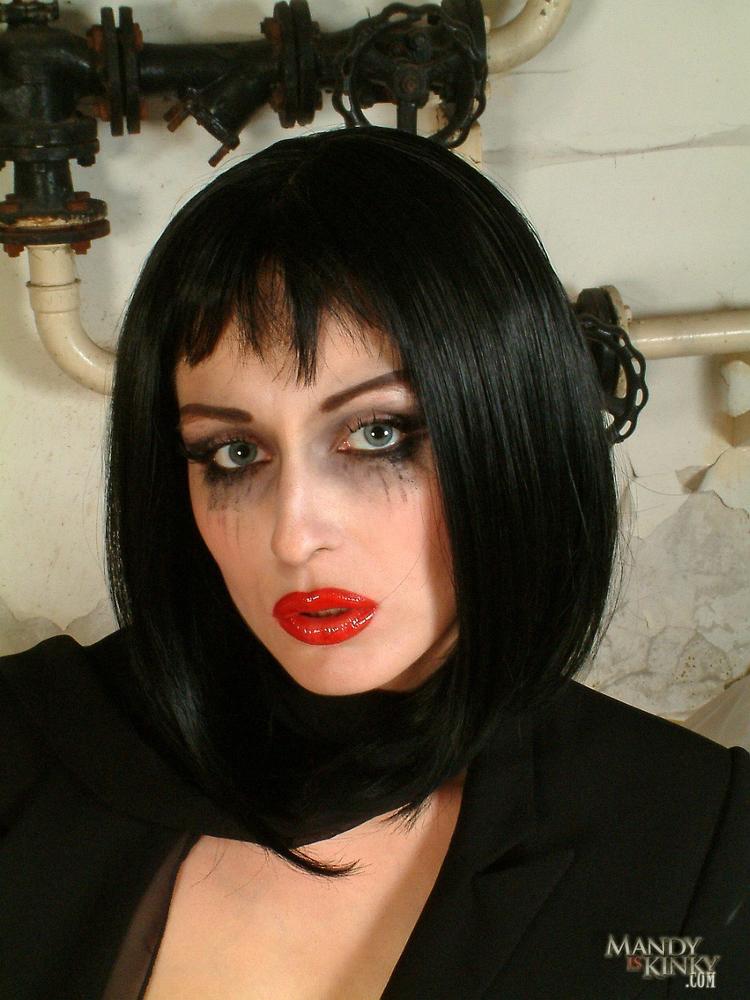 Mandy Bright teases us wearing sexy black leather lingerie and nylon stockings.