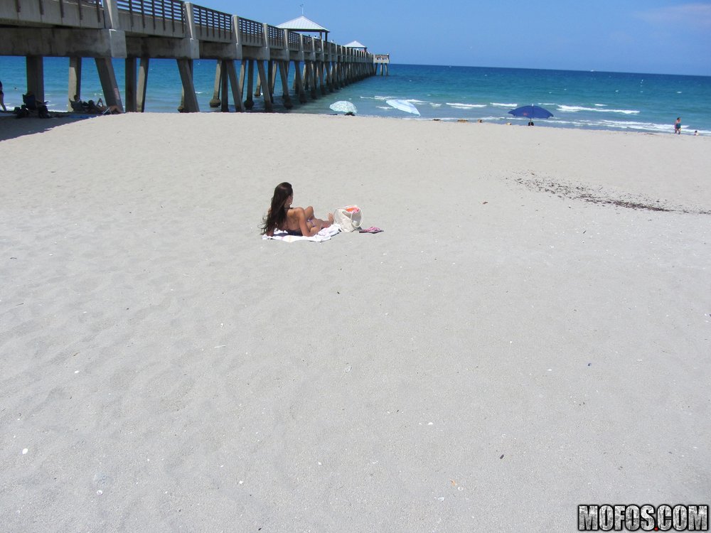 Horny mom enjoys basking alone at the beach exposing her assets before going indoors and fucking har