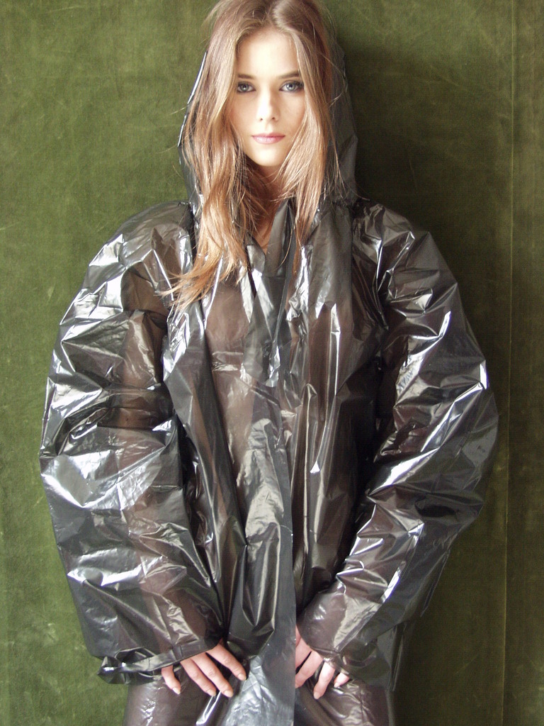 Marilu A strips her sexy PVC coat off and teases us with hr small perky boobs.