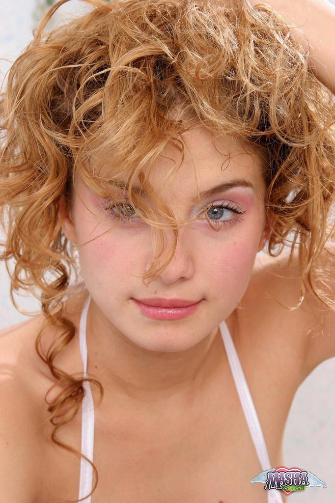 Horny blonde chick Masha Star strips her white lingerie and shows her perky boobs.