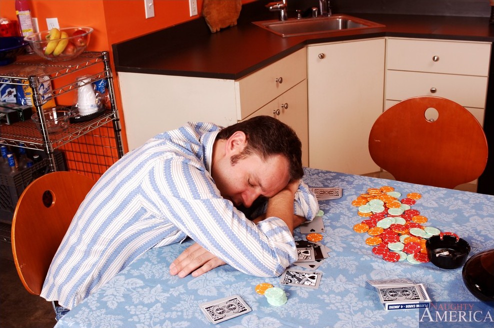 Hot blondie, Megan Monroe, opens her pussy and makes a sleepy dude fuck it hard.